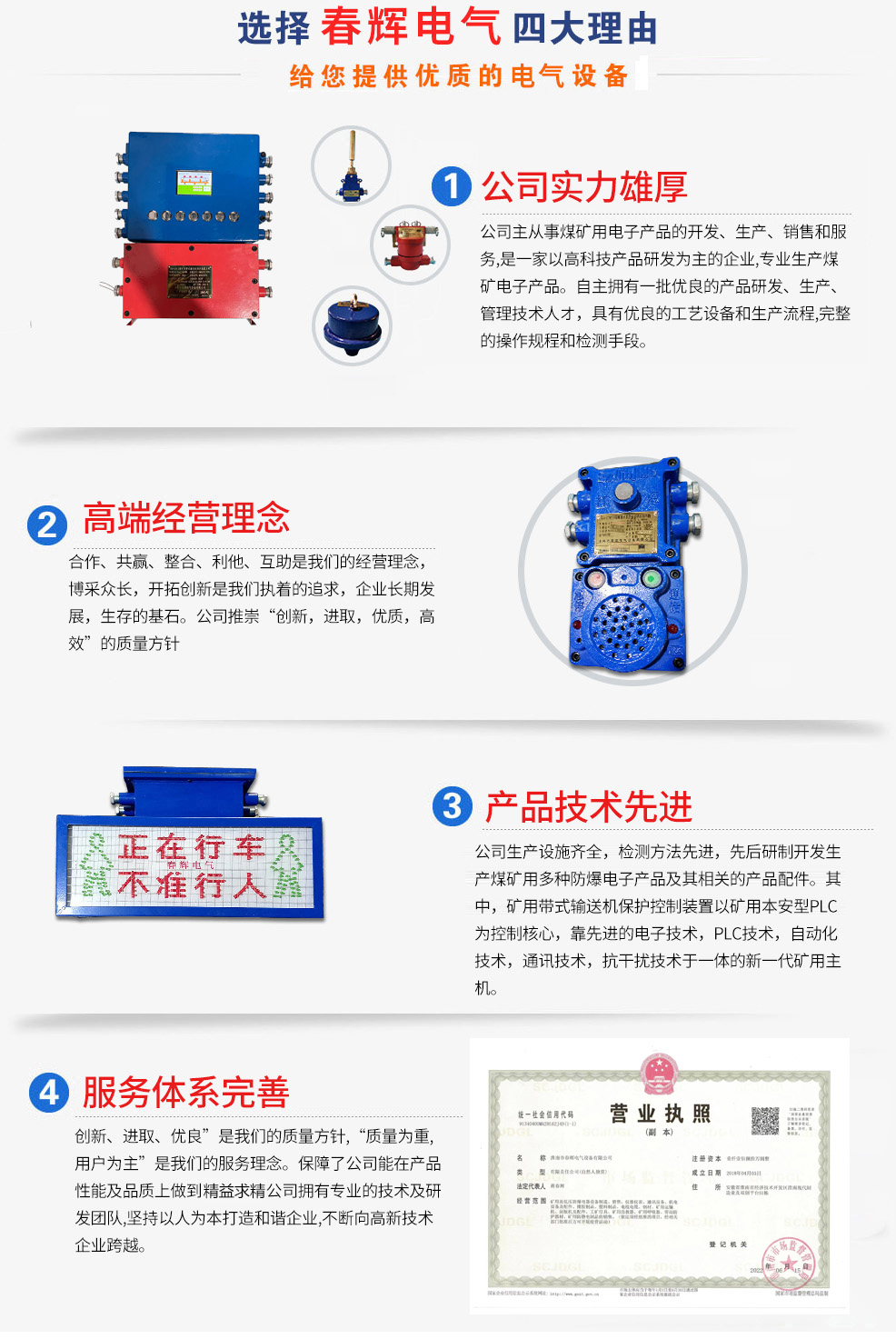 淮南市春輝電氣設備有限公司坐落在具有百年煤炭開采歷史的安徽淮南煤都,位于淮南經濟技術開發區,主要從事煤礦用電子產品的開發,生產,銷售和服務。是一家以高科技產品研發為主的企業,專業生產煤礦電子產品。自主擁有一批產品研發,生產,管理技術人才。具有先進的工藝設備和生產流程,完整的操作規程和檢測方法。公司產品已經成為煤礦安全生···